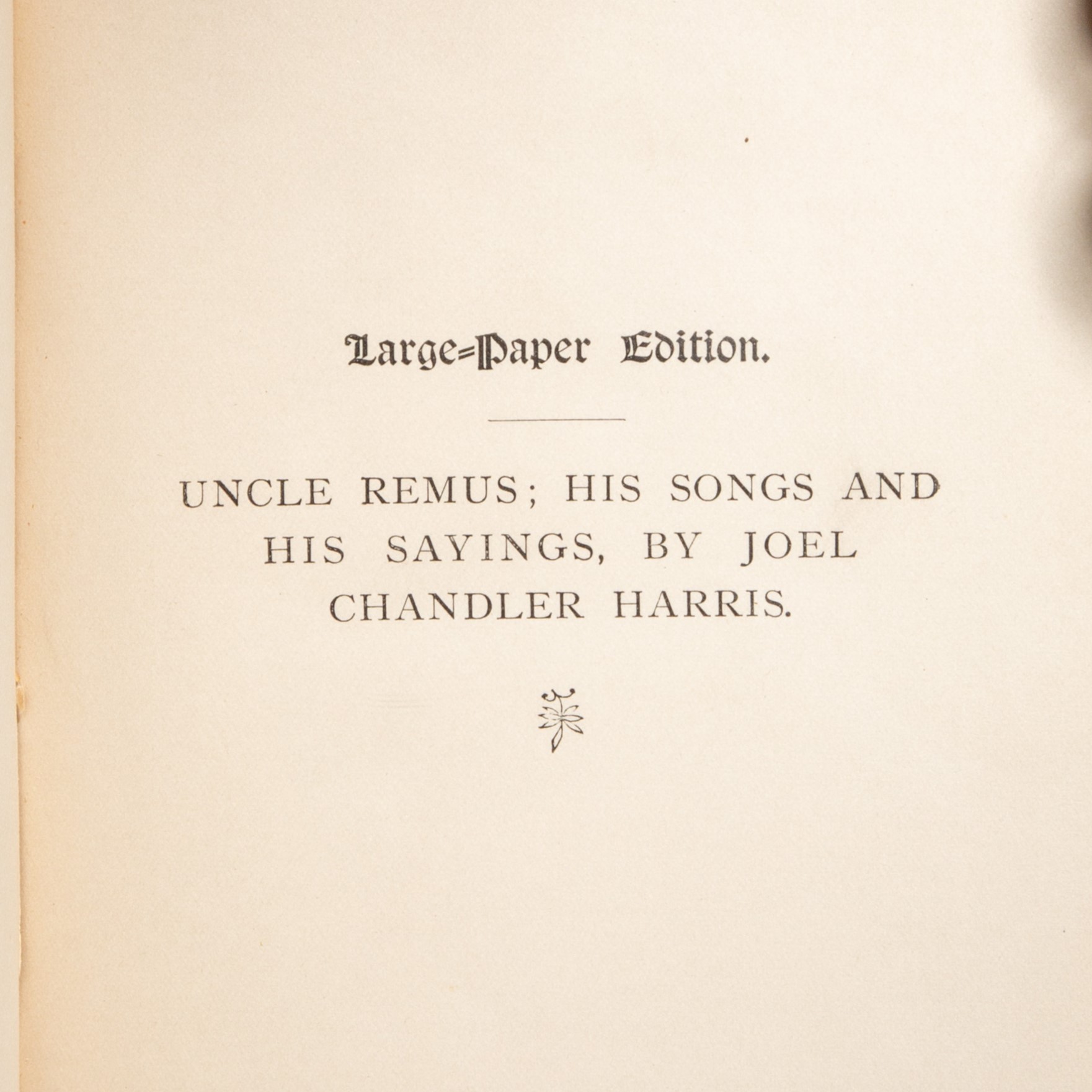 The Large-Paper, deluxe edition of Uncle Remus: His Songs and His Sayings, signed by Joel Chandler Harris. A presentation copy to German Crown Prince, Friedrich Wilhelm in 1896.