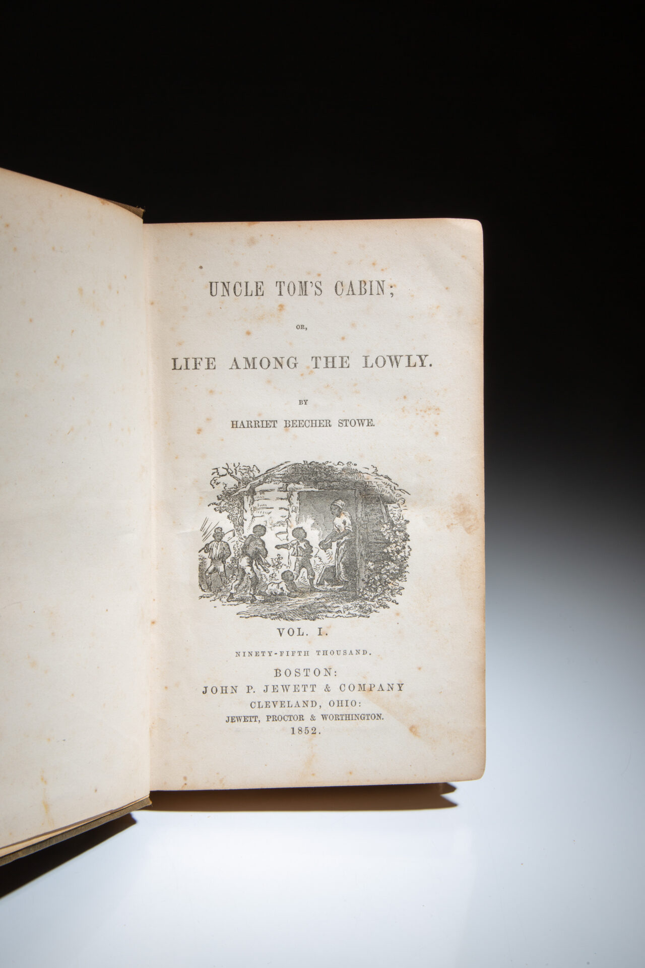 First edition, early issue of Uncle Tom’s Cabin by Harriet Beecher Stowe, with “Ninety-Fifth Thousand” on the title page of both volumes.