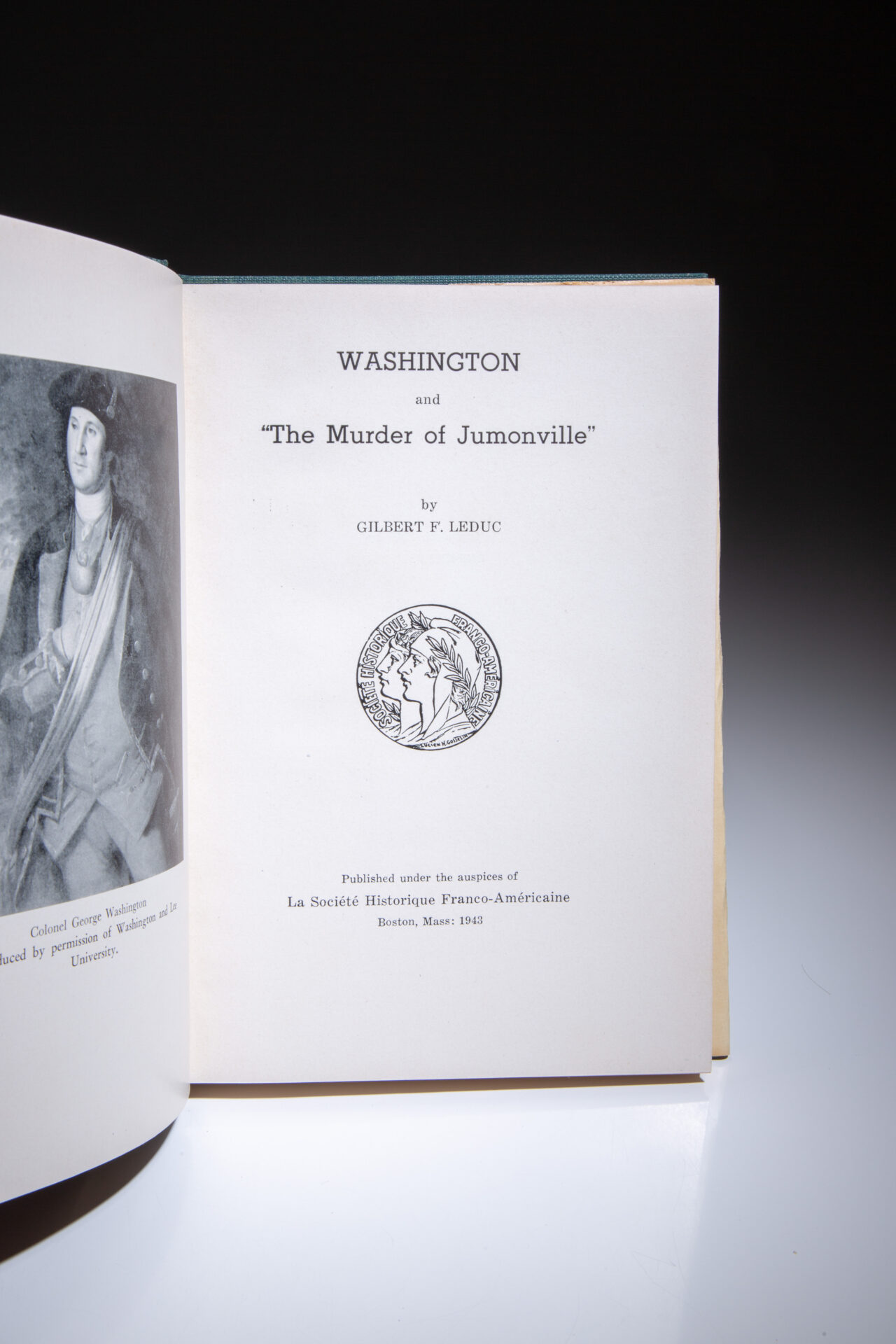 The first edition of Washington and “The Murder of Jumonville,” signed by the author, Gilbert F. Leduc.