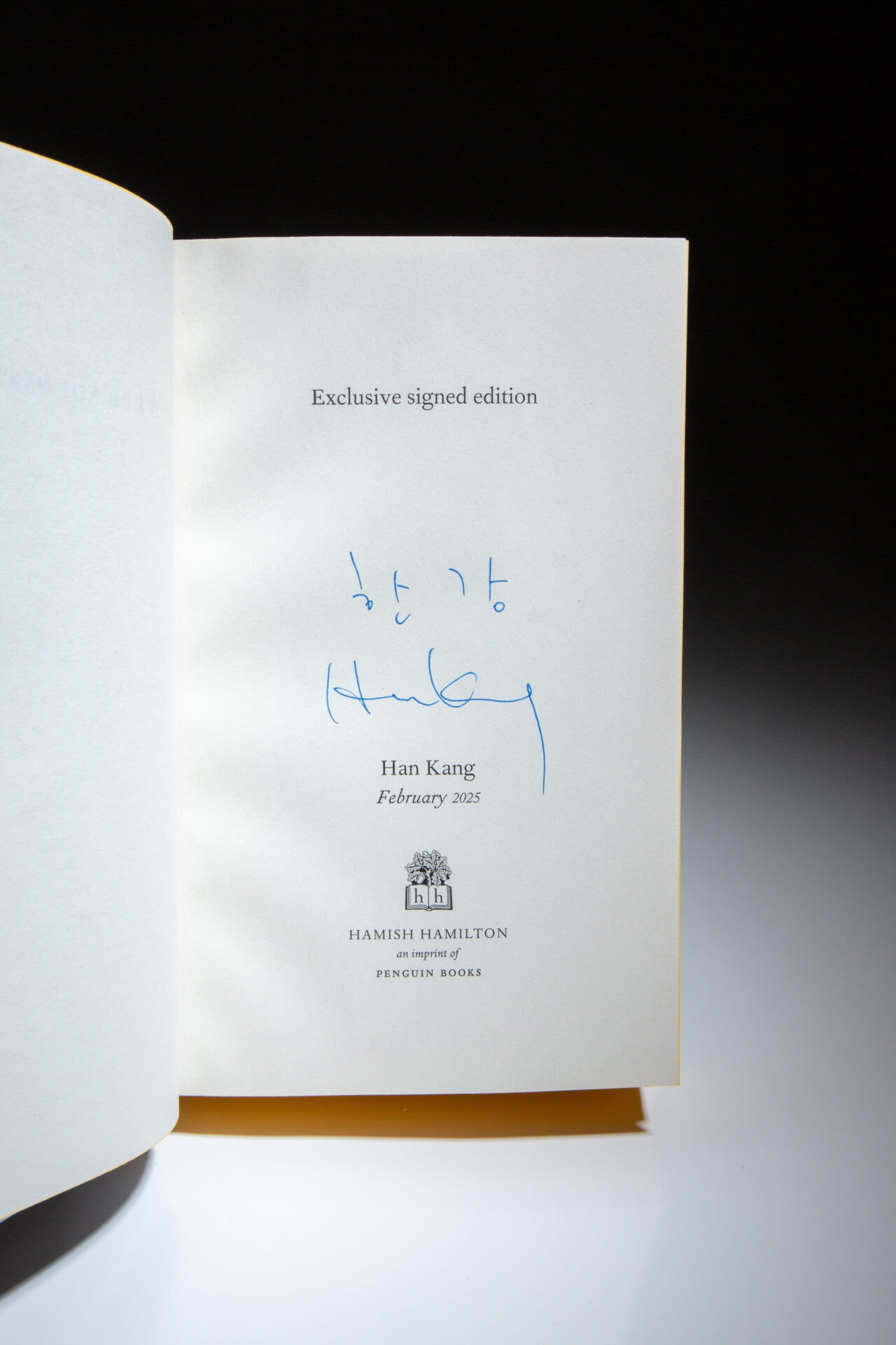 Octavo, [8], 374pp, [4]. White cloth, title stamped in gilt on the spine. The first English edition, with “First Published 2025” statement and “001” on the copyright page. All leaf ends dyed yellow, illustrated endpapers. First published in South Korea in 2021. Appears unread. In the publisher’s fine dust jacket, £18.99 on the front flap, “Independent Bookshop Signed Exclusive Edition” sticker on the front cover.