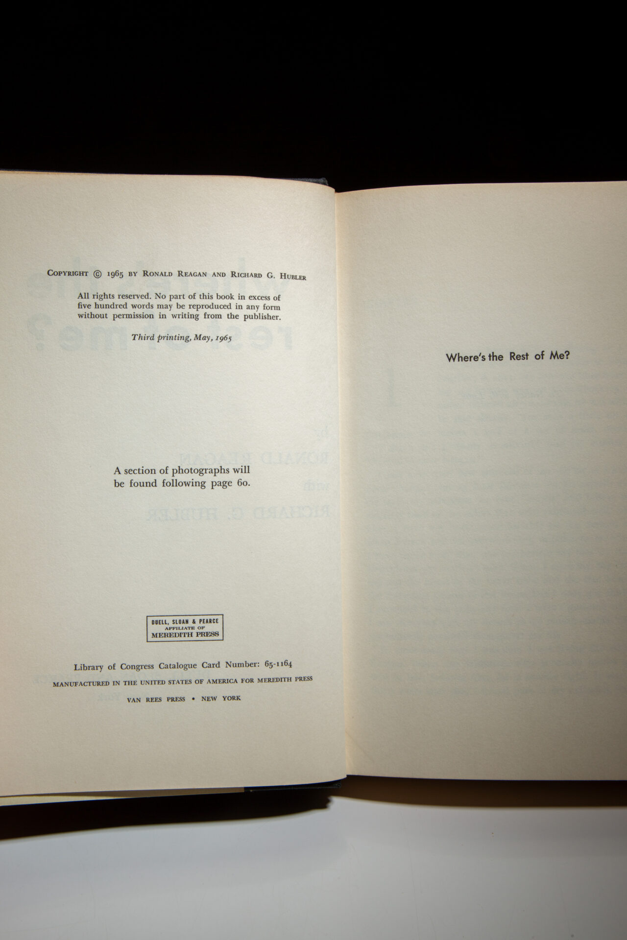 Signed copy of Where’s the Rest of Me?, The Ronald Reagan Story, signed by Nancy and Ronald Reagan.