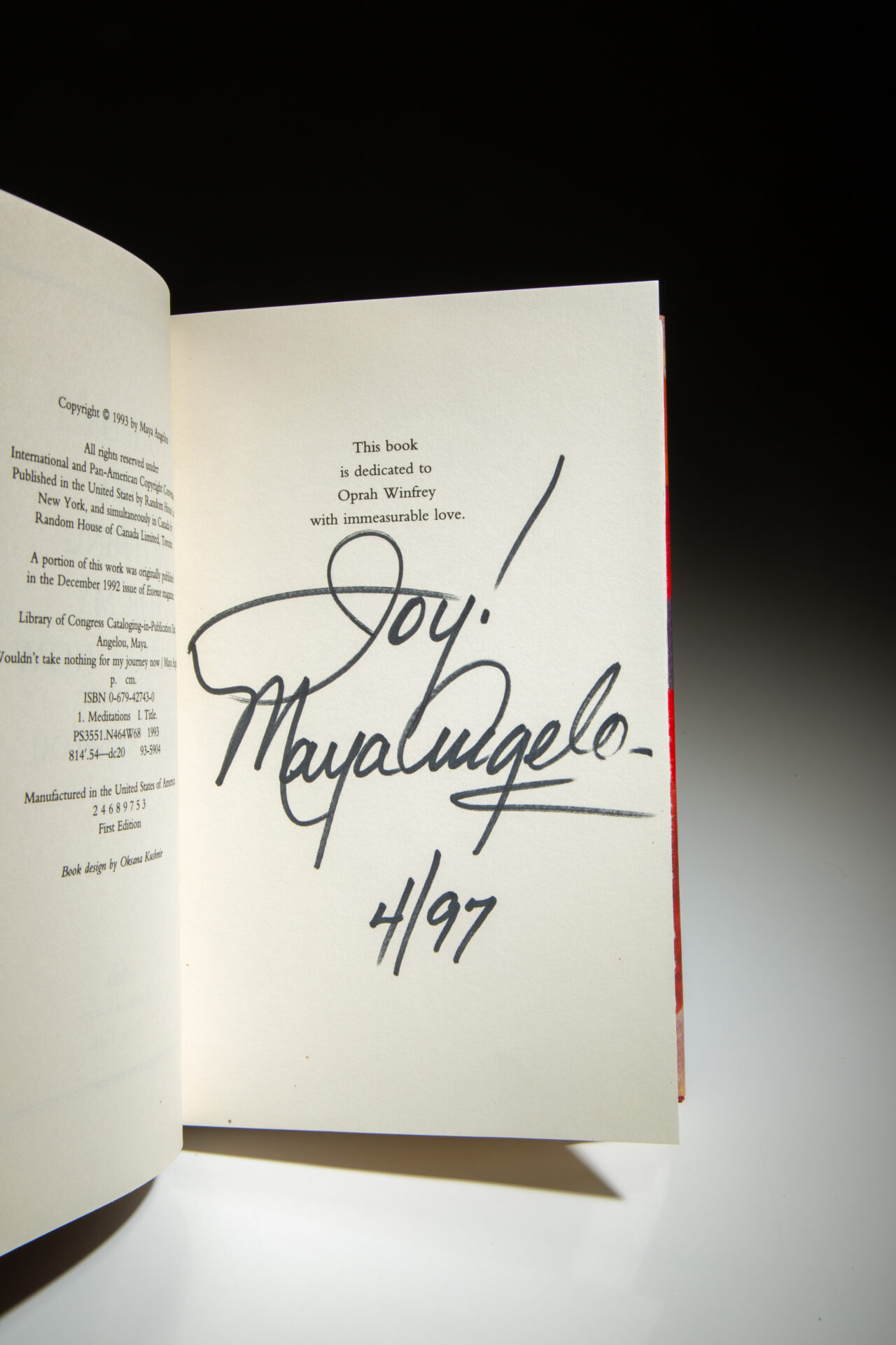 Signed on the dedication page: “Joy! Maya Angelou / 4/97.”