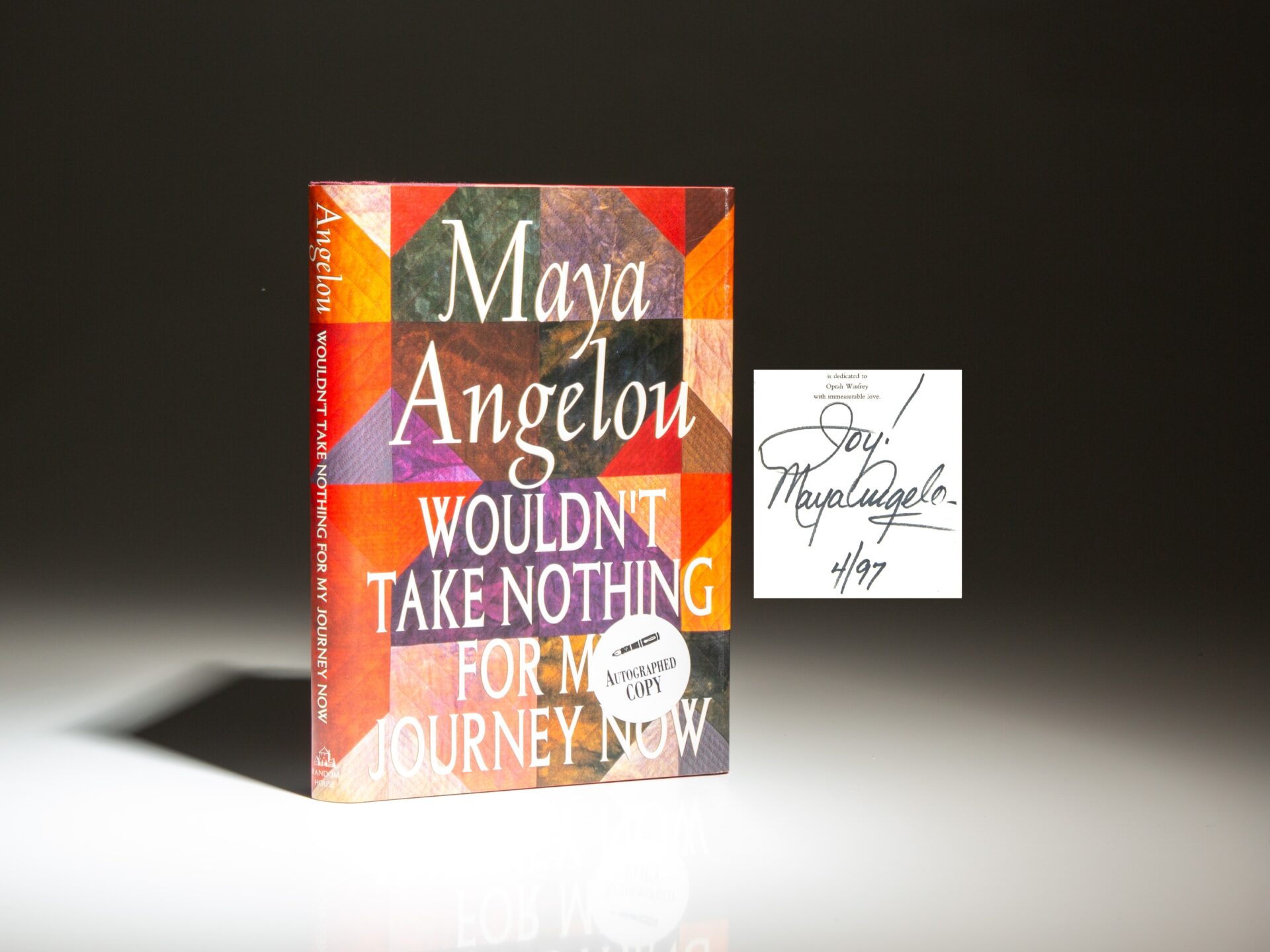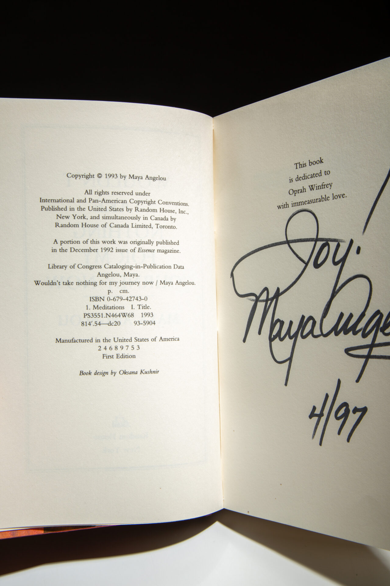 The first edition of Wouldn’t Take Nothing For My Journey Now, signed by Maya Angelou.